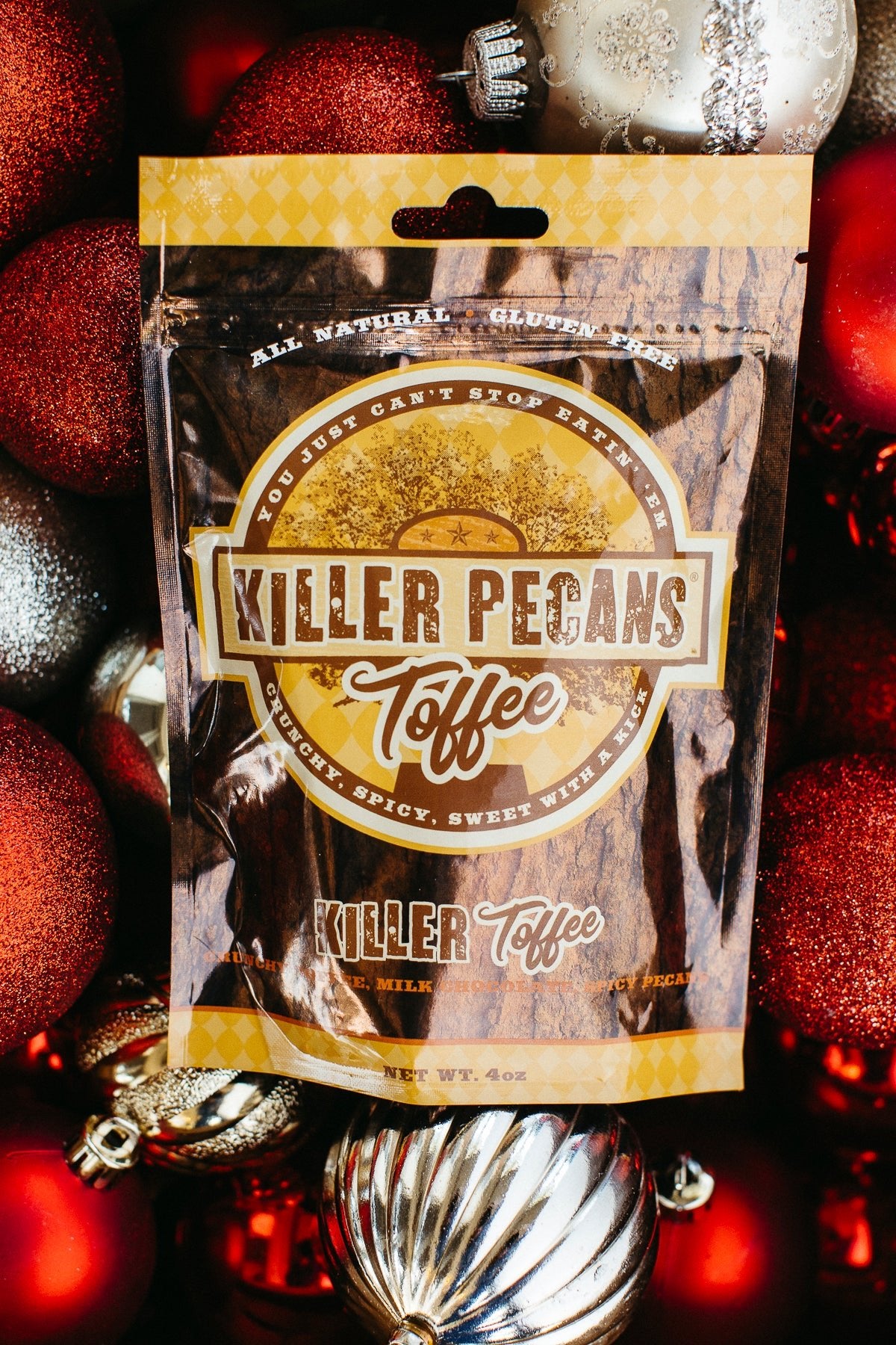 Killer Pecans are made deep in the heart of Texas using only the finest junior mammoth Texas pecan halves. They always taste fresh and crisp, with a kick.