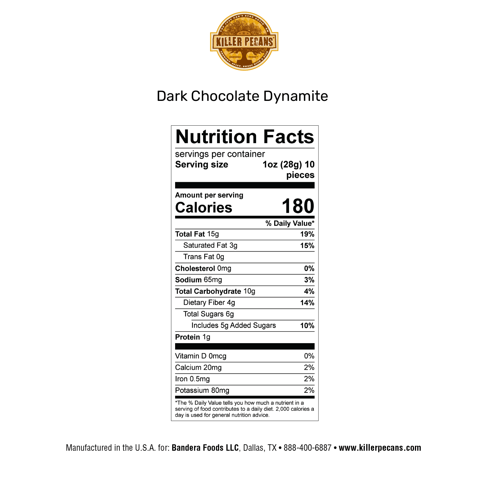 The sweet pairing your taste buds didn’t know they were missing! Chocolate Dynamite is the first mind-blowing chef collaboration between Killer Pecans and renowned Dallas chocolatier Dude Sweet Chocolate. Sweet and Spicy for the Chocolate Lover. Chocolate Dynamite is our original famous Killer Pecans dipped in rich dark South American chocolate.